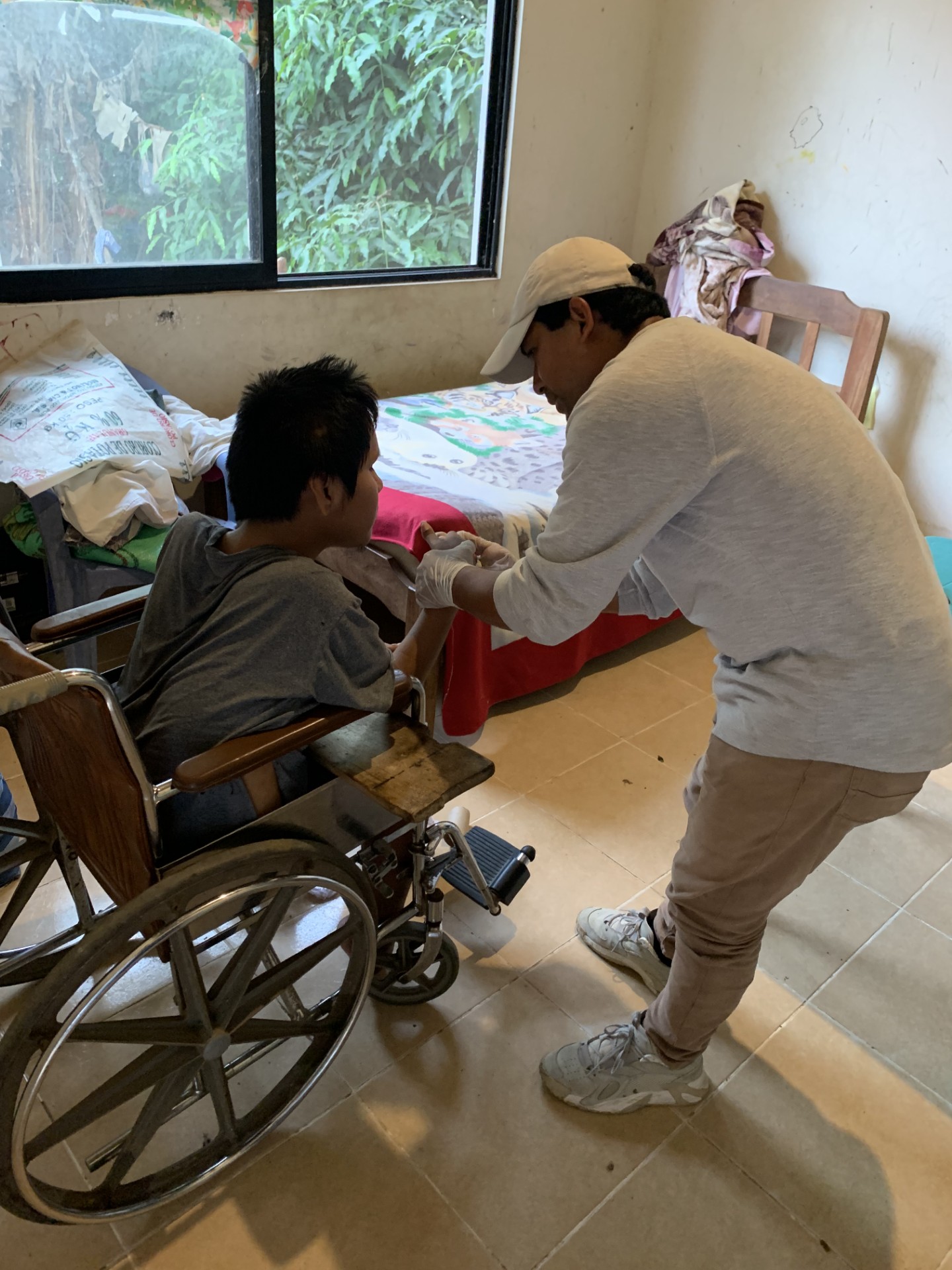 In the home of siblings Erik and Yeydy, for example, Wilber rolled up his sleeves and jointly performed physical therapy services for them–along with the professional physical therapist as their severe, physical disabilities necessitate maintaining good circulation of the legs that no longer provide them with mobility.